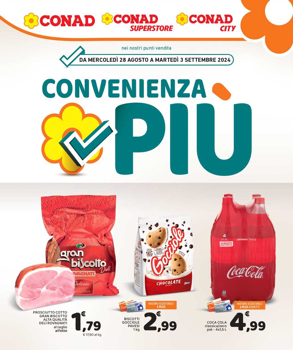 Ecco il volantino Conad Lazio Convenienza Più dal 28 agosto al 3 settembre 2024. Sette giorni di offerte straordinarie che si uniscono a quelle in corso con gli altri volantino Conad.