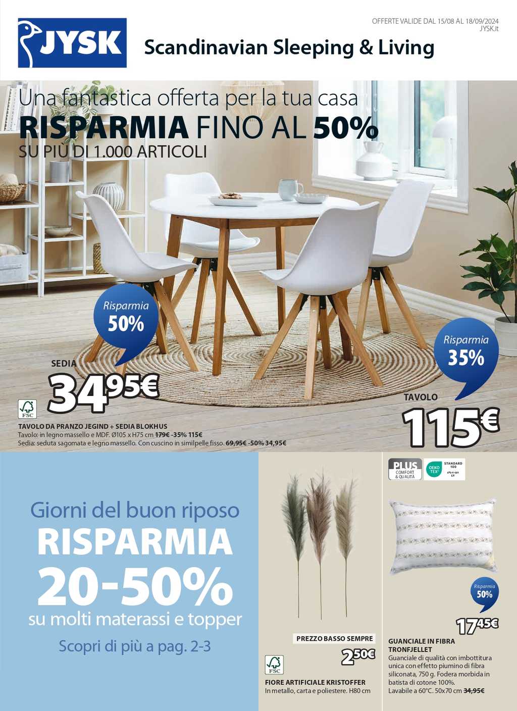 Volantino JYSK dal 15 agosto al 18 settembre 2024